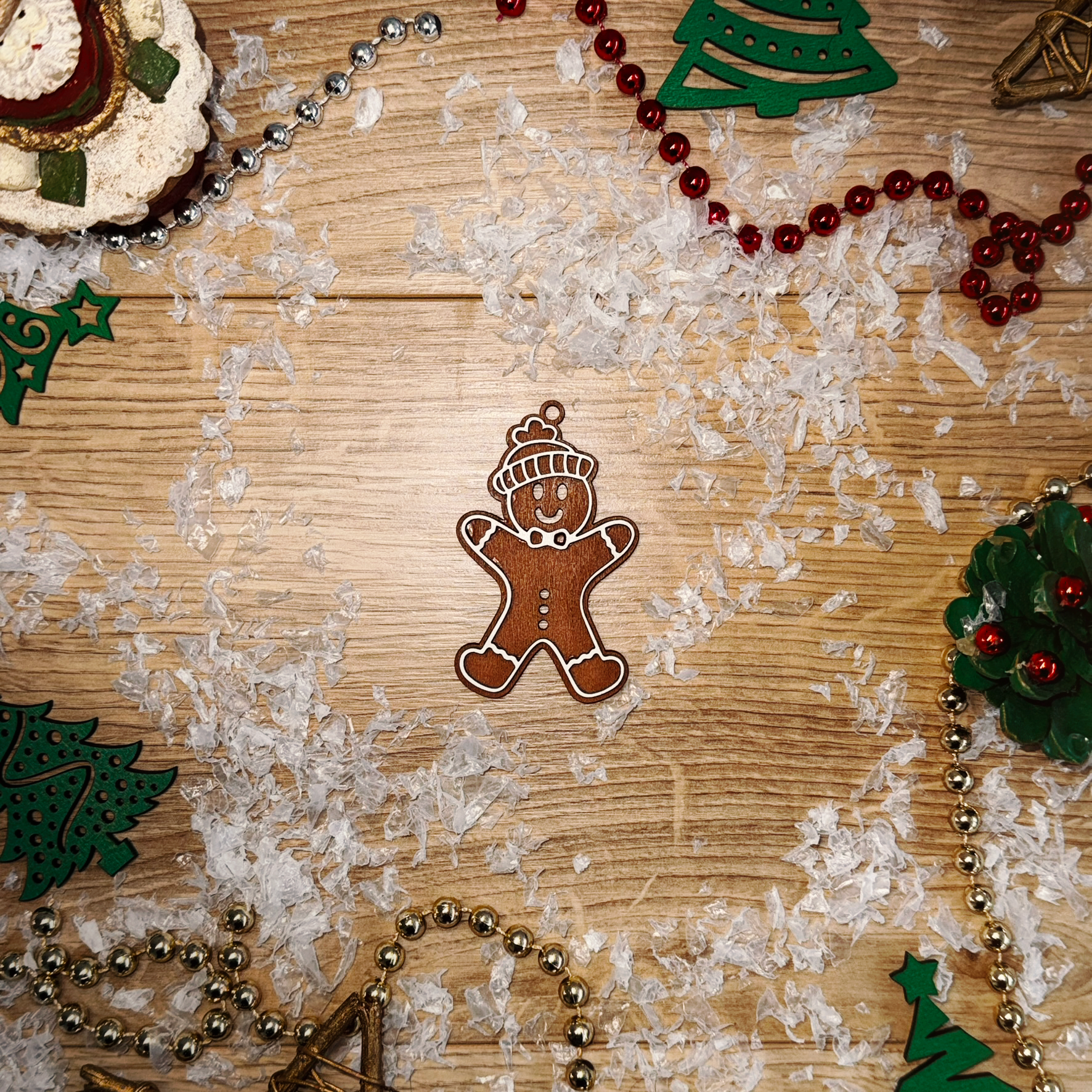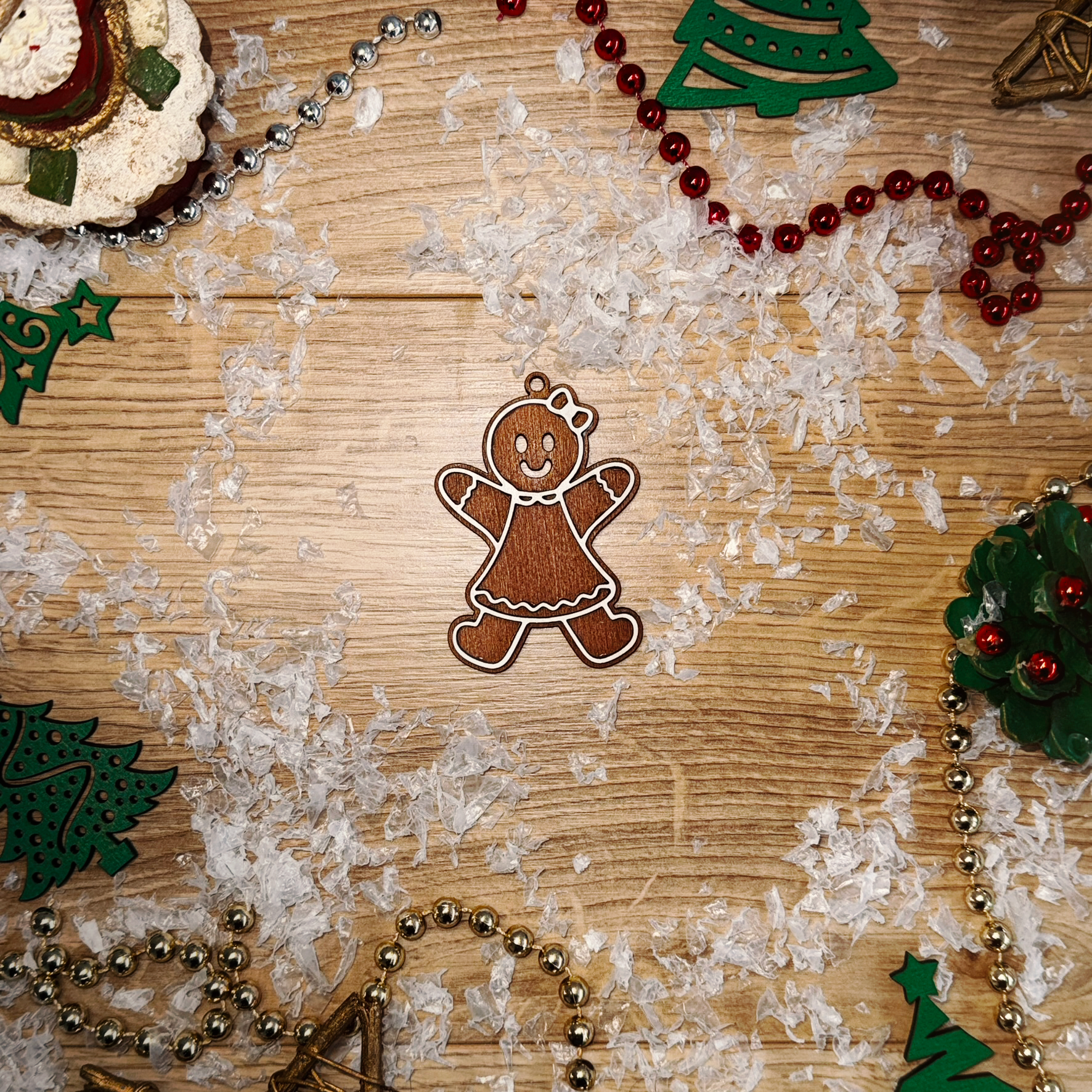 🍪 Mézeskalács figura – fa karácsonyi dísz (6 mm vastag)